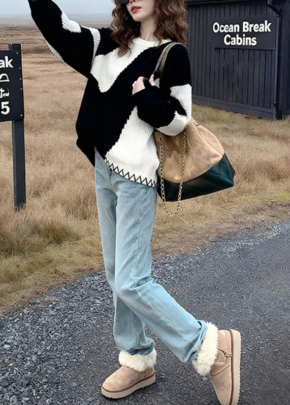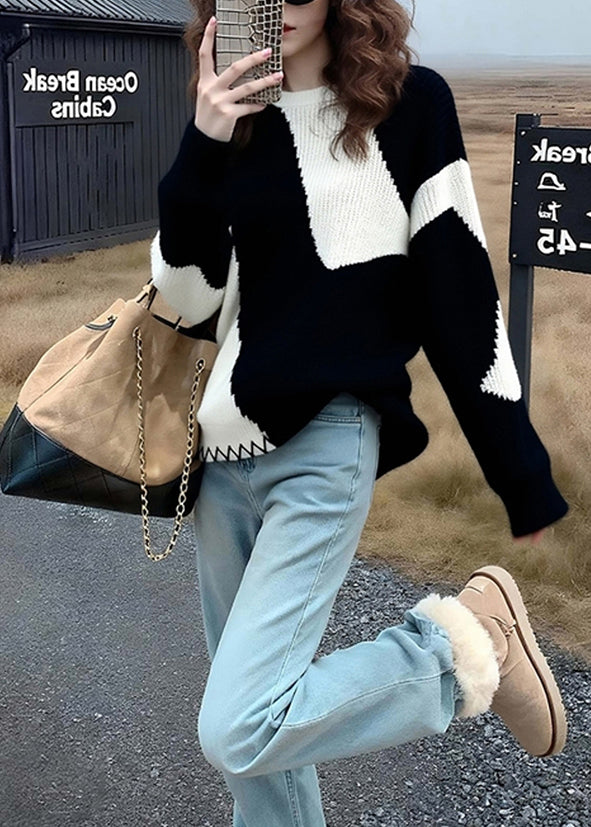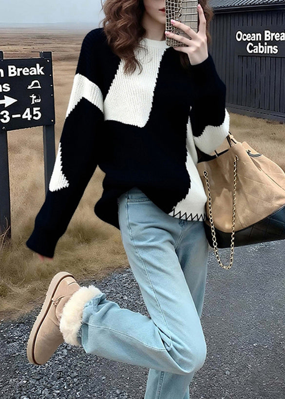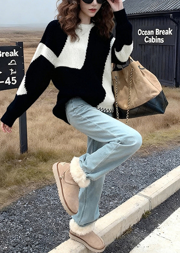 Classy Colorblock Oversized Cozy Knit Sweaters Winter