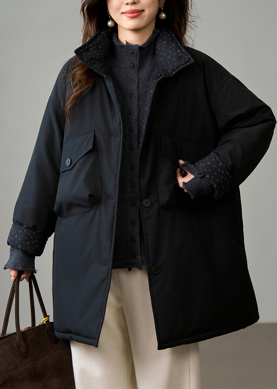 DIY Black Stand Collar Wear On Both Sides Fine Cotton Filled Winter Coats