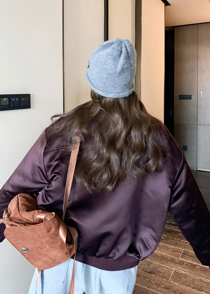 Fitted Purple Embroidered Pockets Fine Cotton Filled Jackets Winter