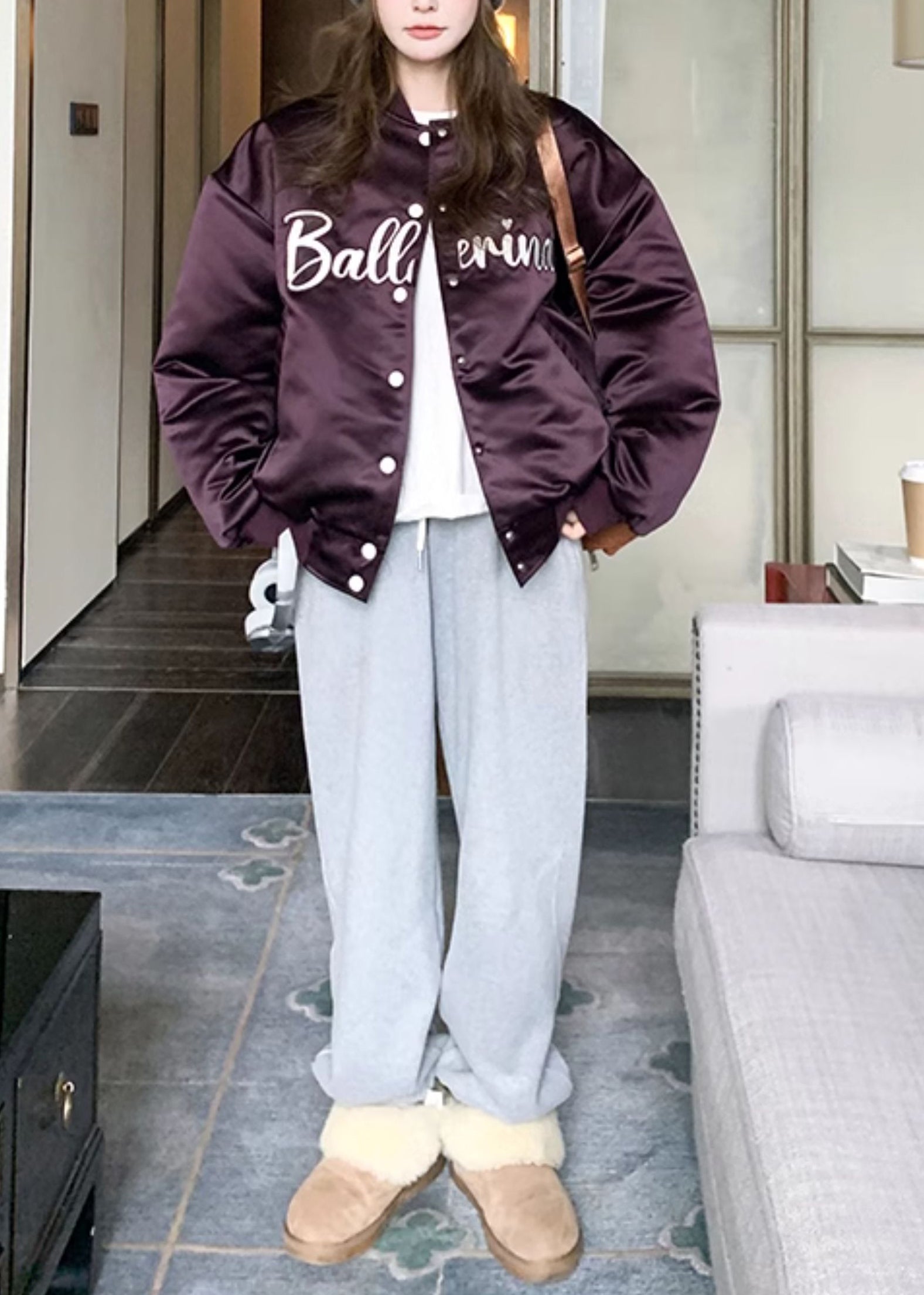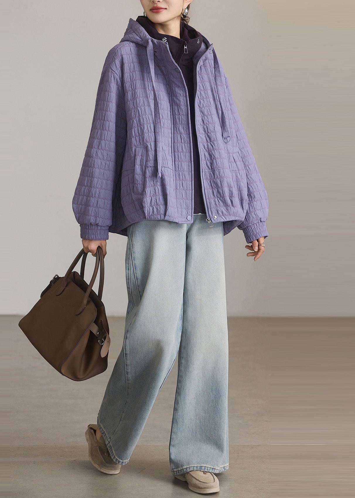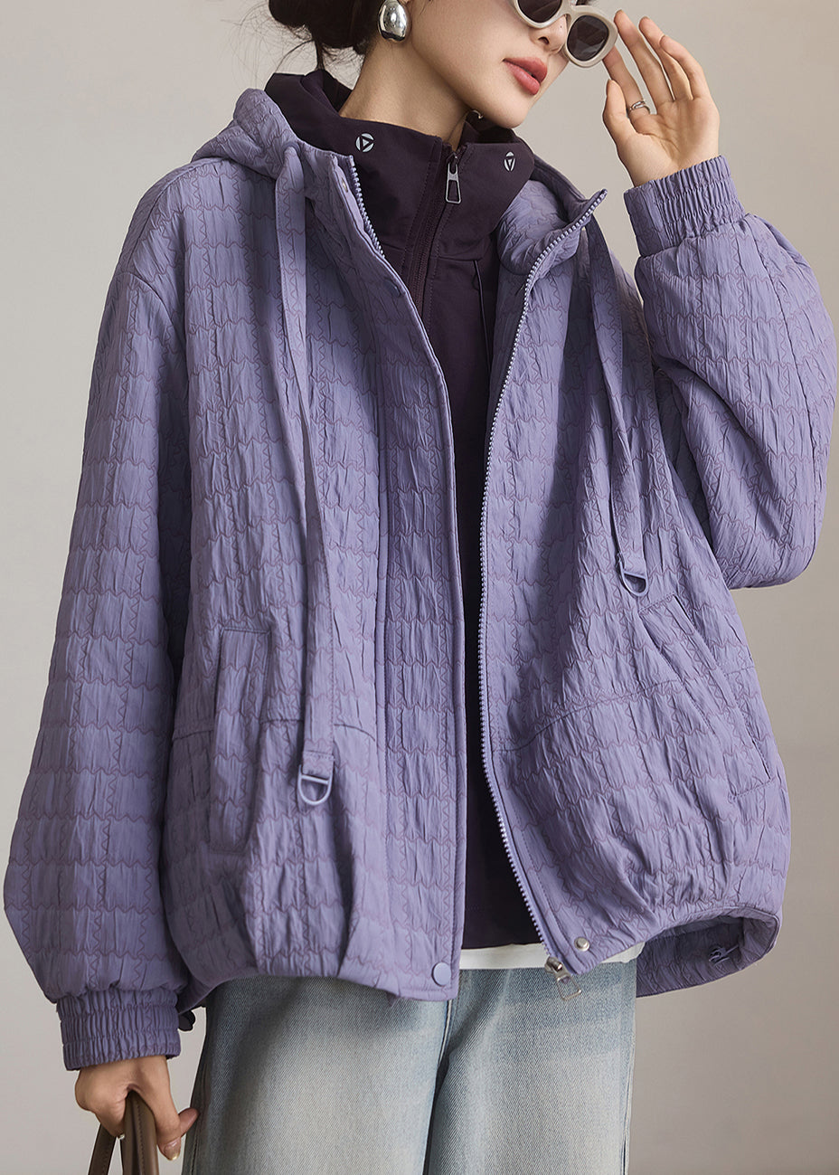 Simple Lavender Oversized Fine Cotton Filled Hoodie Coat Winter