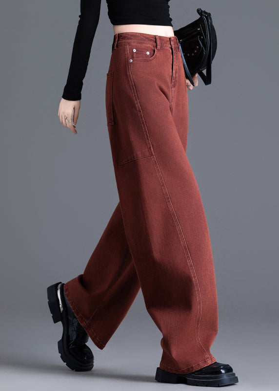 Fashion Brick Red Oversized Patchwork Denim Pants Spring