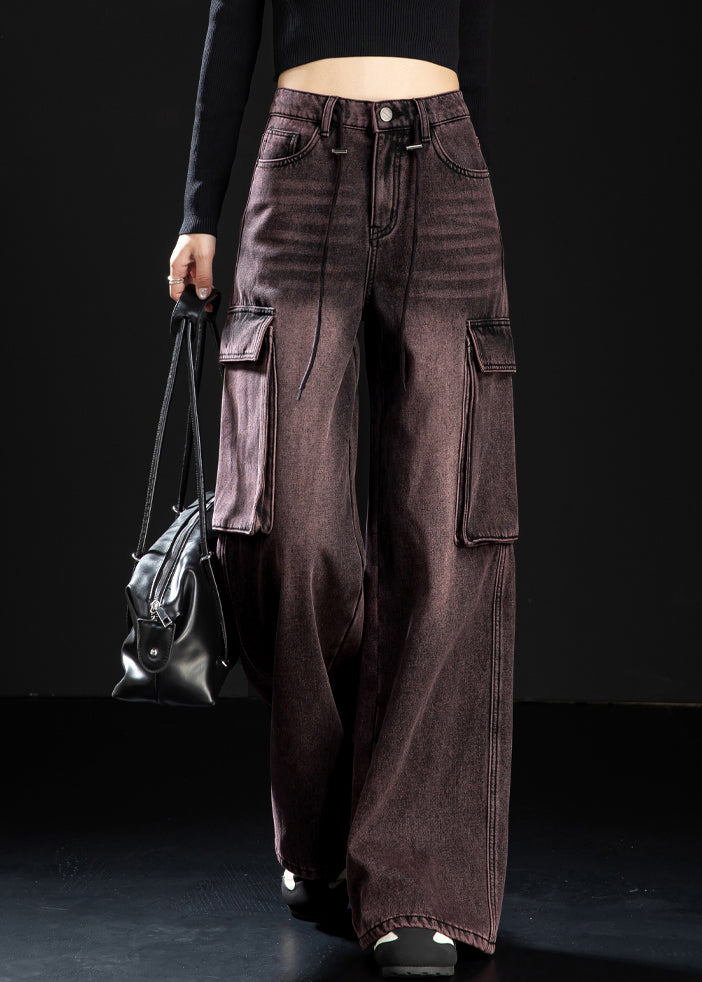 Art Gradient Color Oversized Pockets Warm Fleece Denim Pants Winter