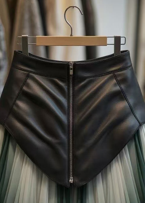 Unique Multicolor Zippered Tulle Patchwork Faux Leather Skirt Spring