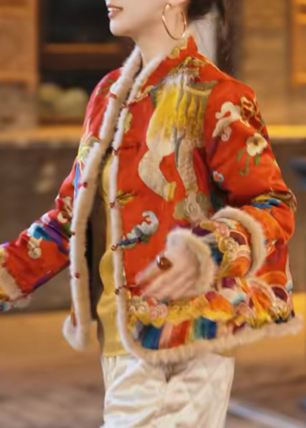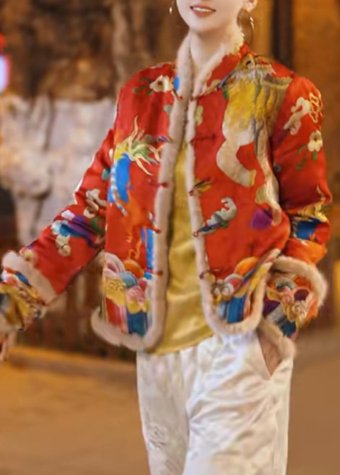 Original Apricot Button Fluffy Patchwork Fine Cotton Parka Winter