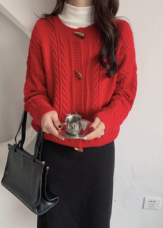 Boutique Red V Neck Jacquard Knit Cardigan Spring