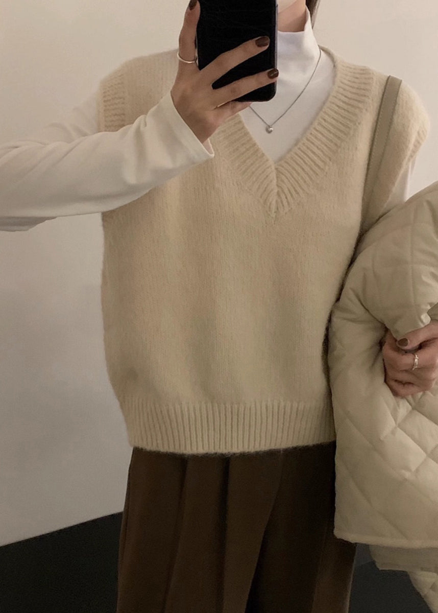 Women Apricot V Neck Button Knit Vest Tops Sleeveless