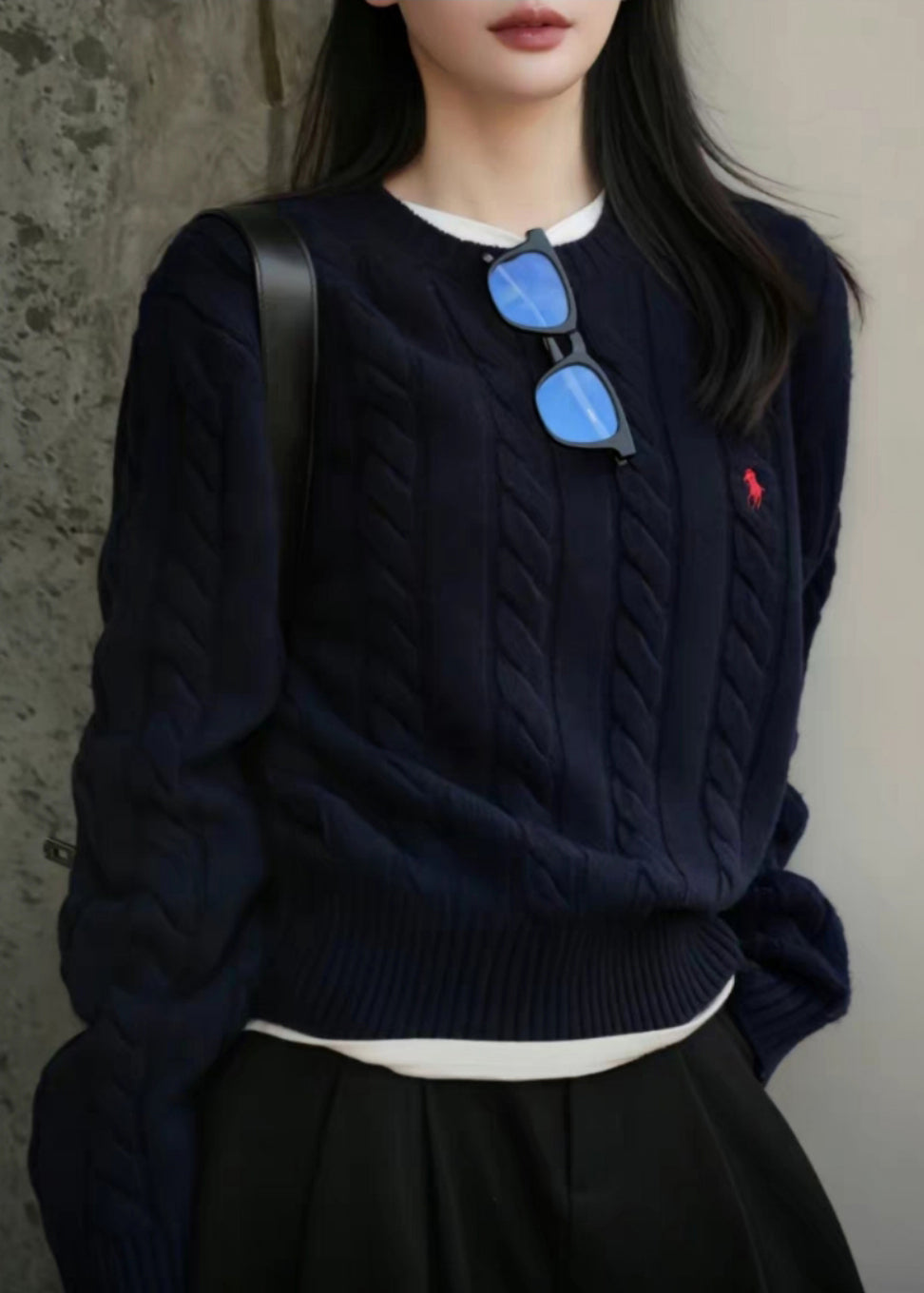 French Camel O Neck Embroidered Knit Sweaters Tops Spring