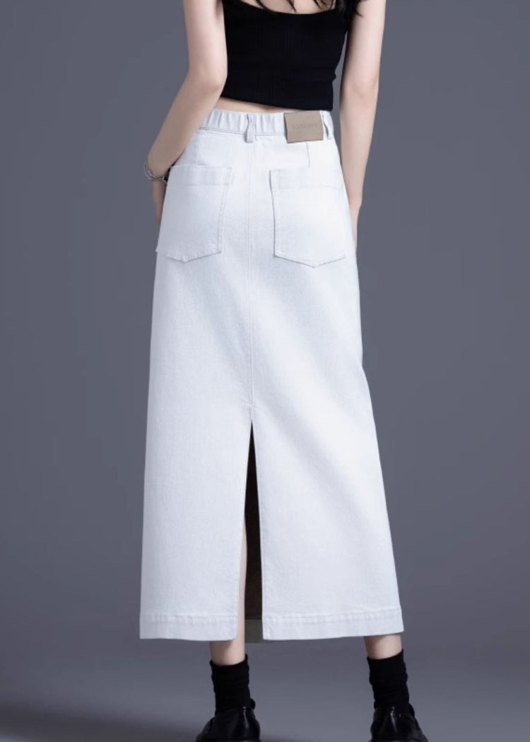 Bohemian White Side Open Denim A Line Skirt Spring