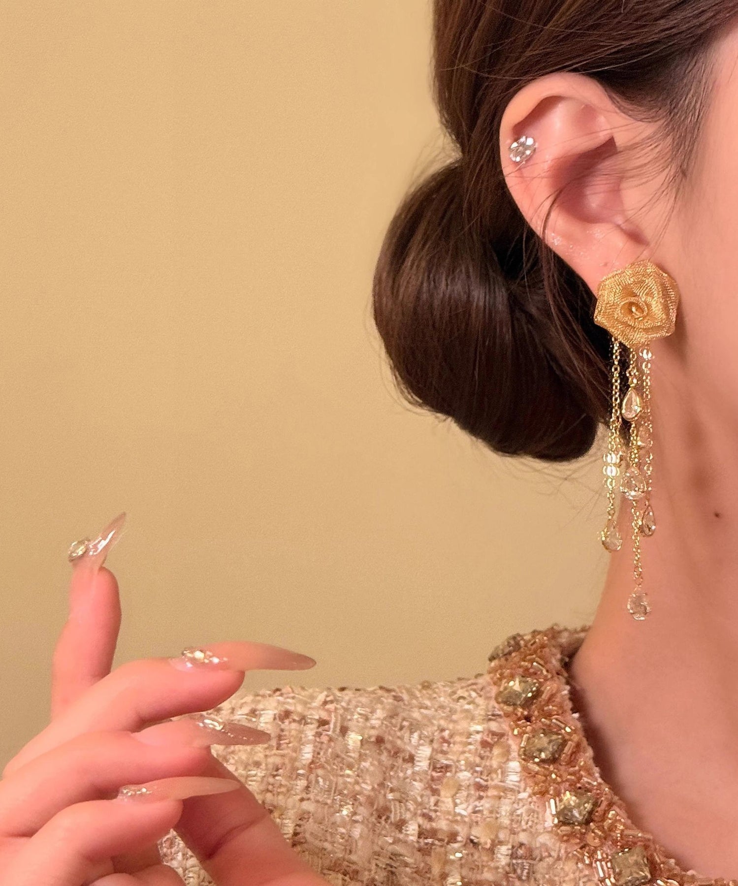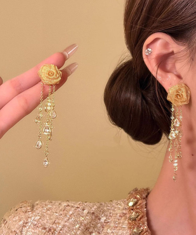 Unique Gold Copper Overgild Rose Tassel Drop Earrings