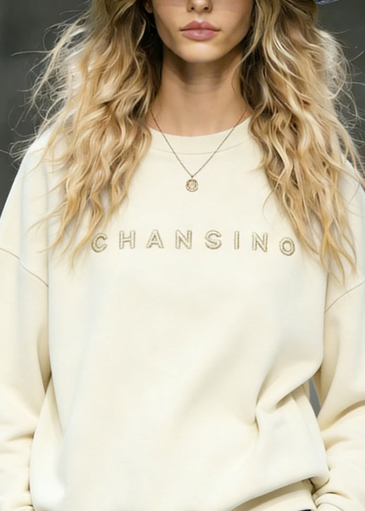 Casual Beige O-Neck Embroidered Cotton Top Spring