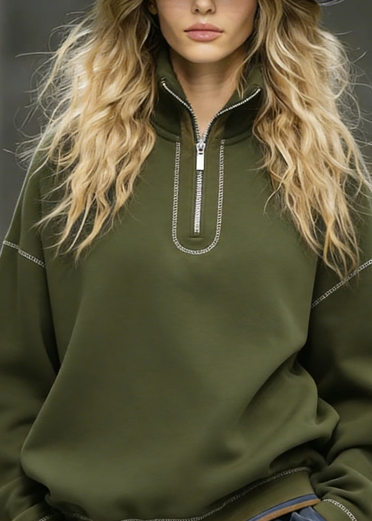 Italian Zip Up Patchwork Cotton Sweatshirts Top Spring