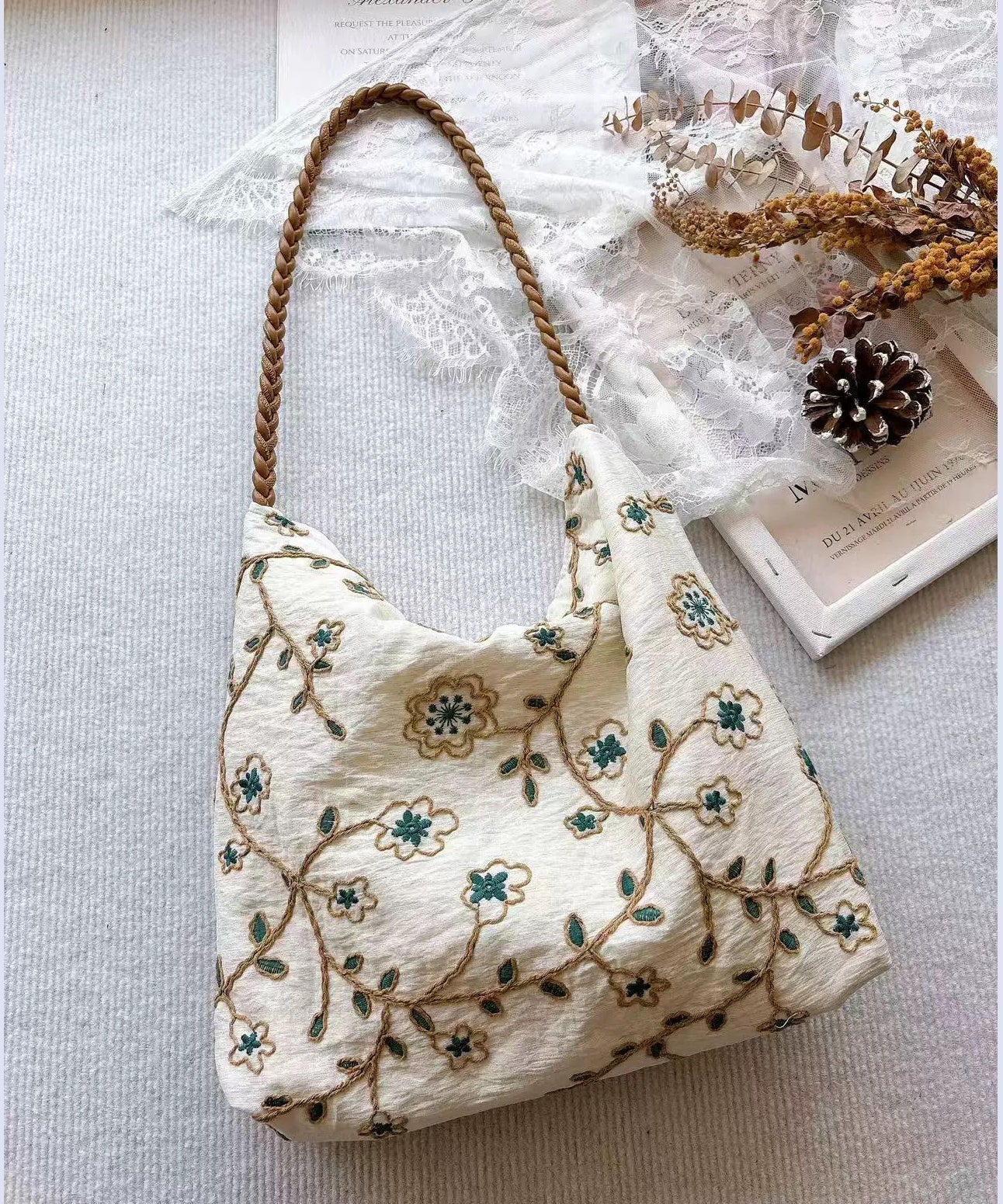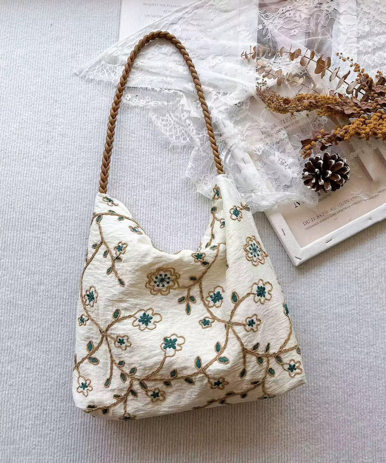Art White Embroidered Cotton Shoulder Bags