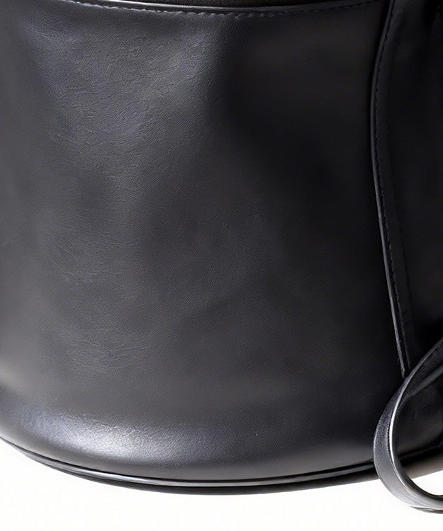 Fashion Black Calf Leather Versatile Round Bag
