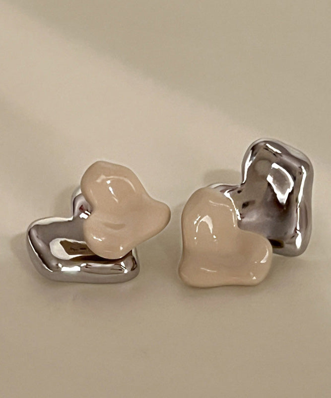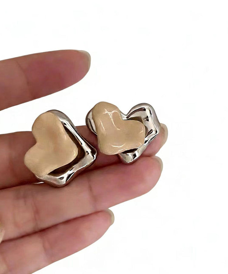 French Metal Heart-Shaped Stud Earrings