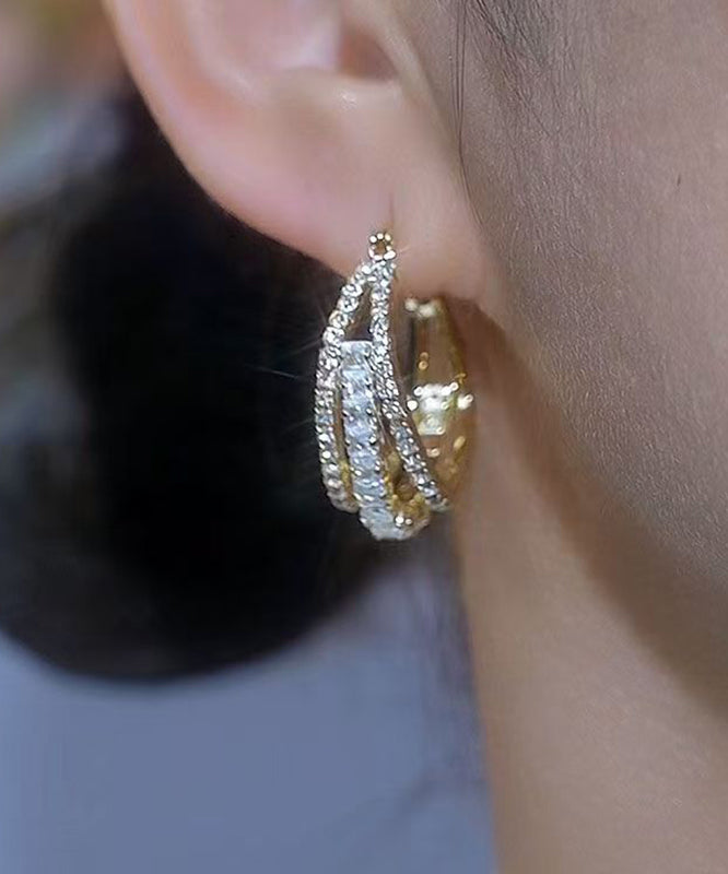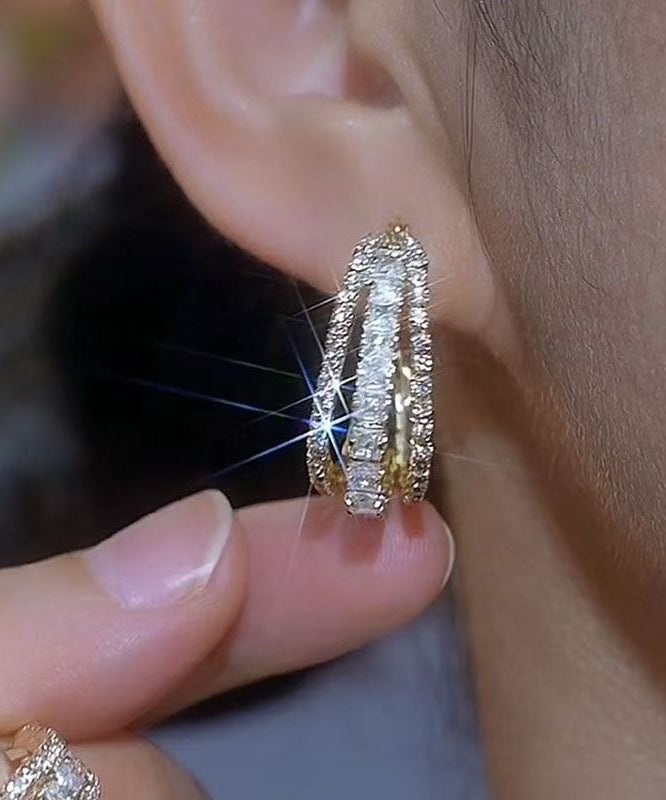 Novelt Gold Copper Alloy Three Floors Square Zircon Hoop Earrings