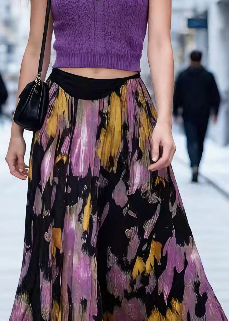 Art Tie Dye Wrinkled Exra Large Hem Chiffon Skirt Summer