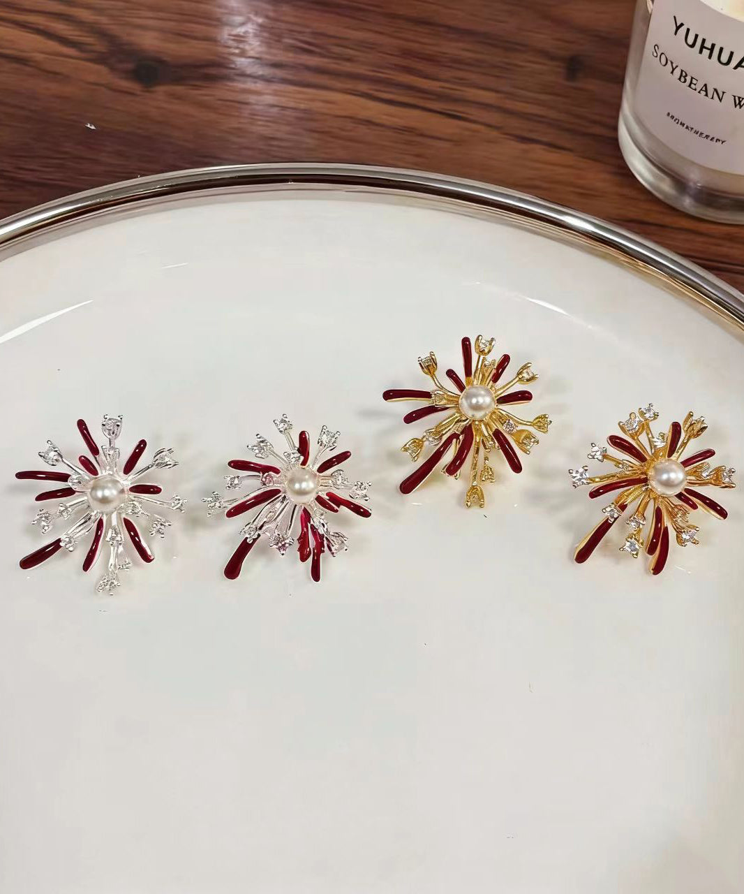 Beautiful Red Fireworks Shape Metal Stud Earrings