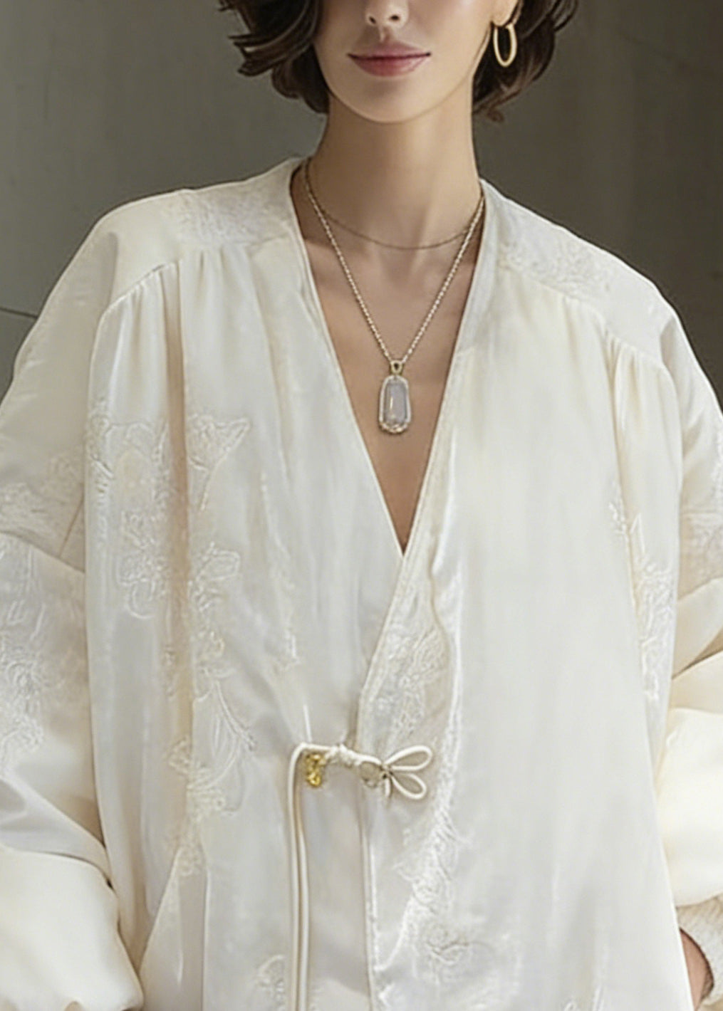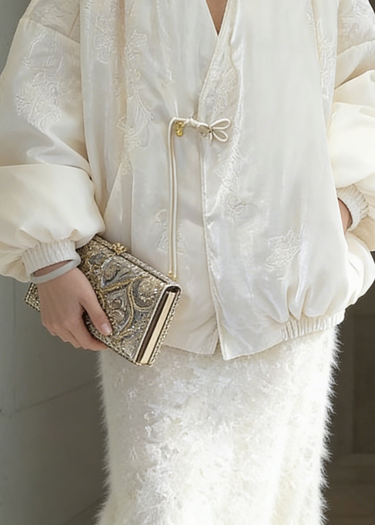 Chinese Style White Embroidered Duck Down Coats Winter