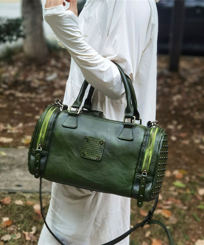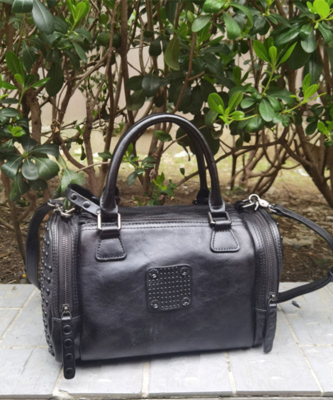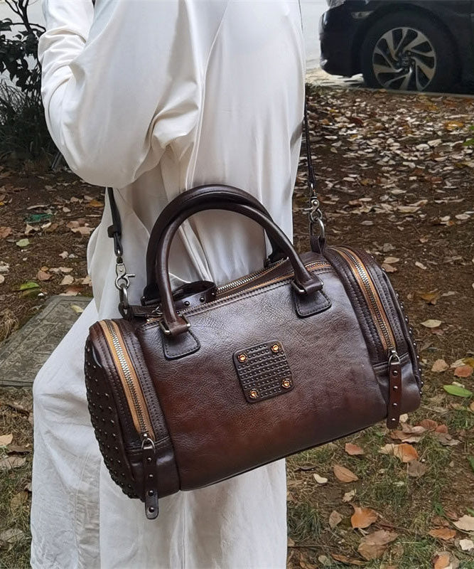 Handmade Coffee Rivet Calf Leather Tote Bag