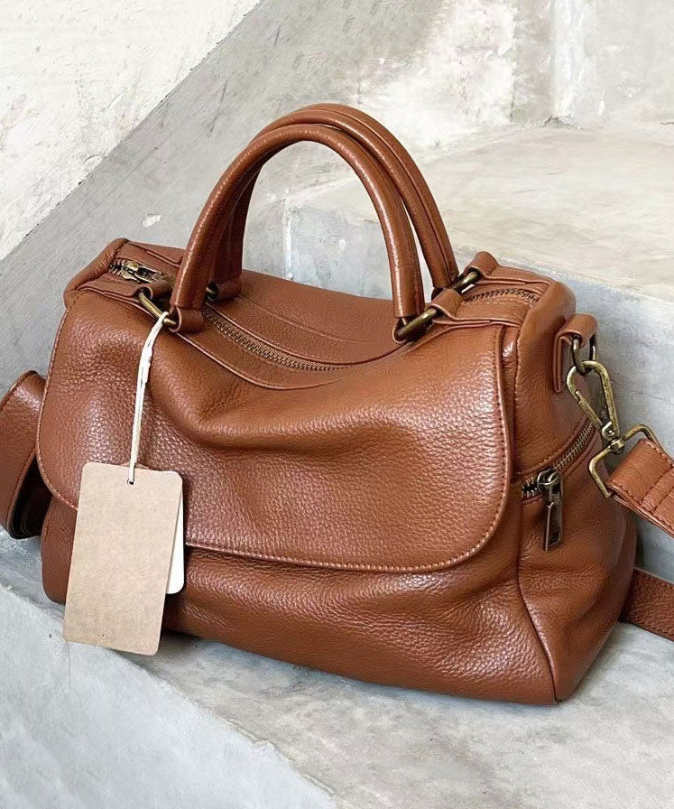 Boutique Brown Large Capacity Versatile Calf Leather Tote Bag