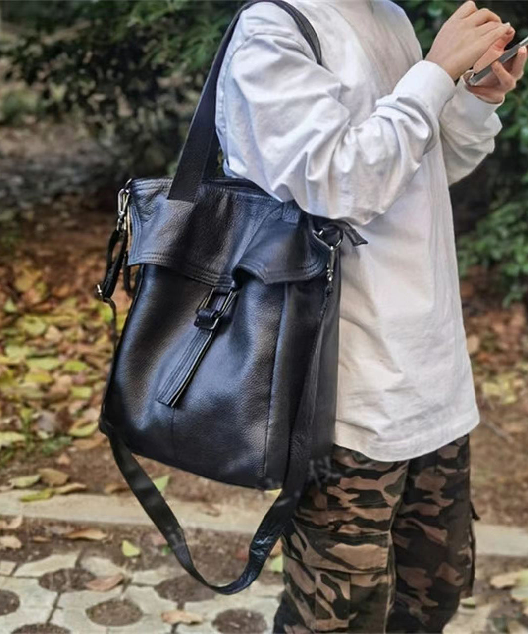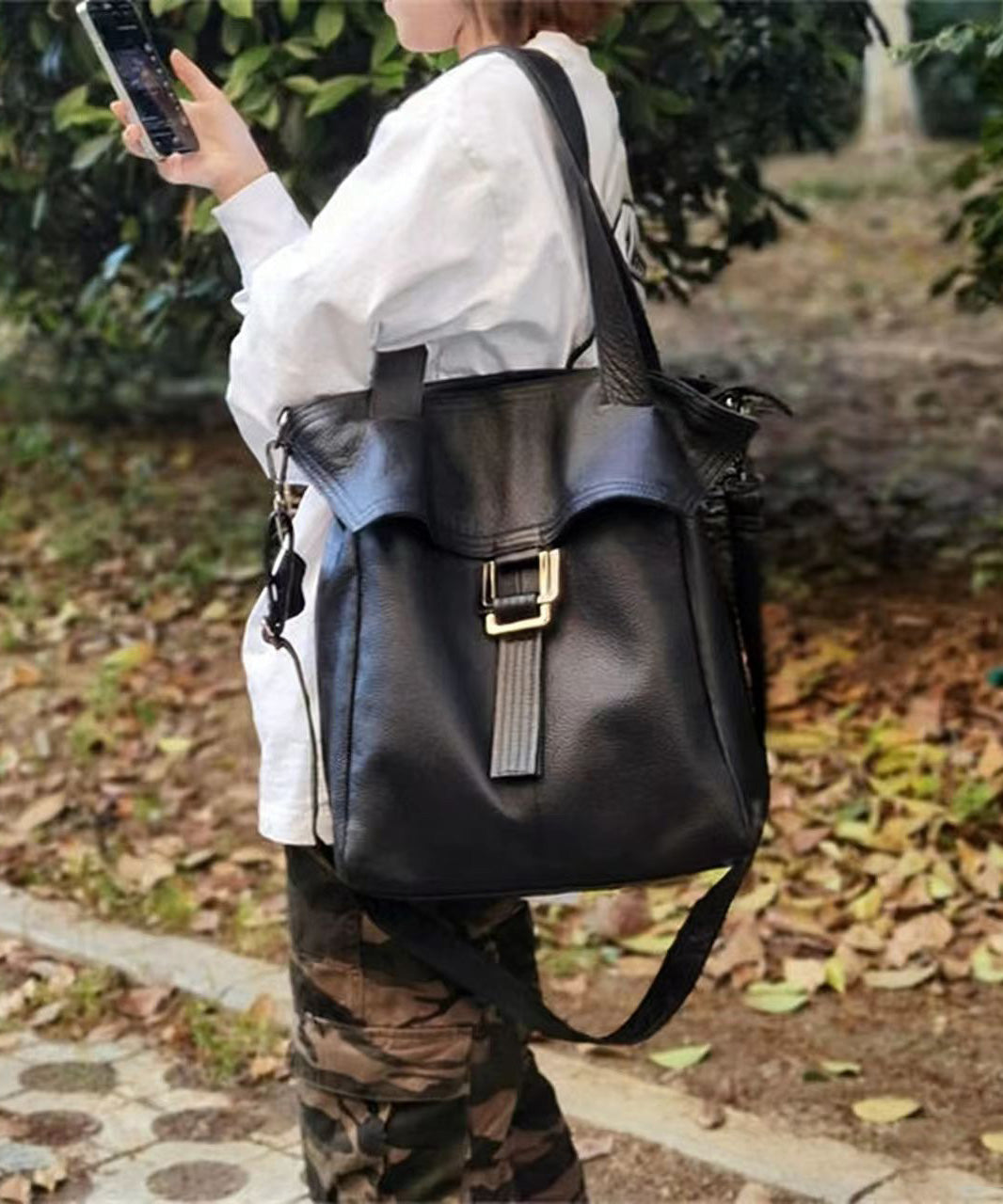 Casual Brown Large Capacity Durable Calf Leather Shoulder Bag