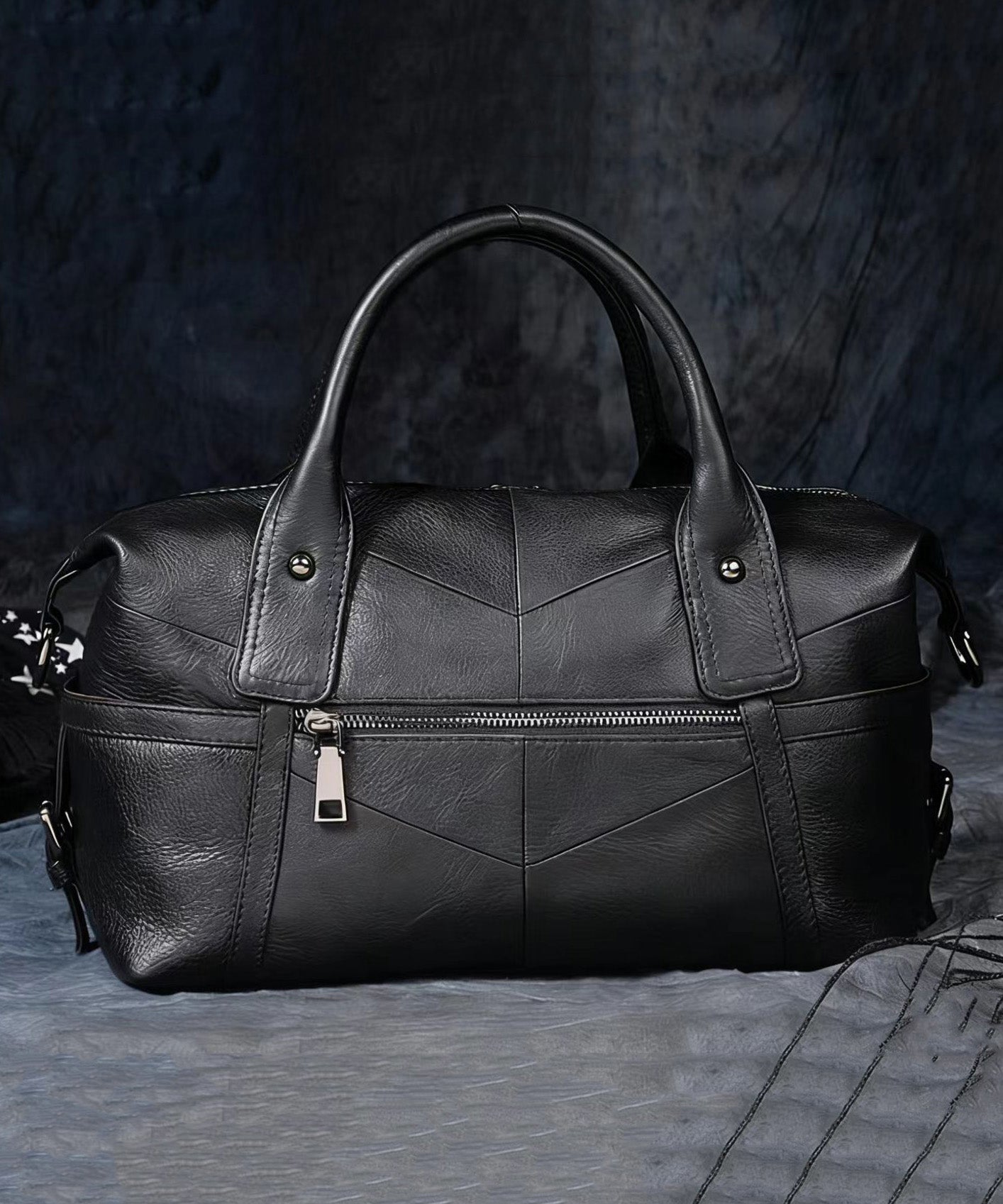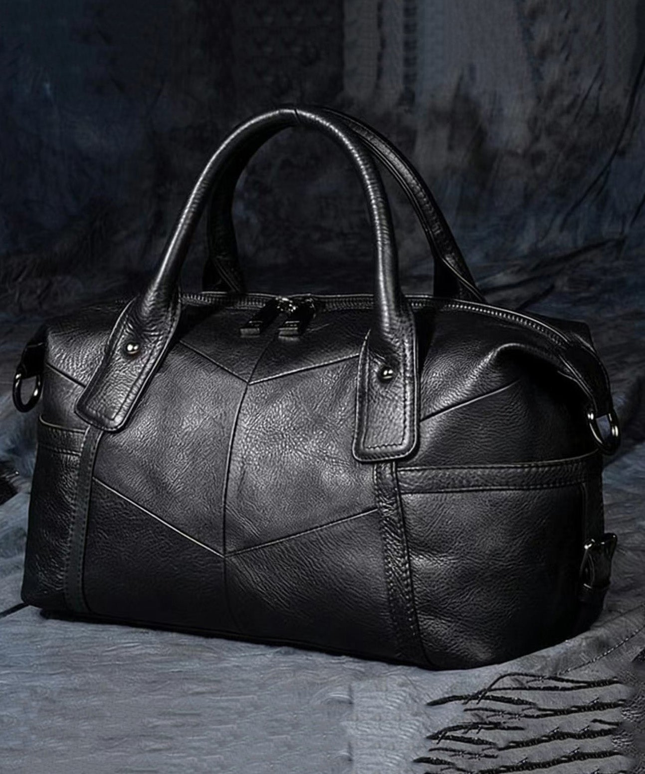 Original Design Black Pleated Acrylic Circular Faux Leather Tote Bag