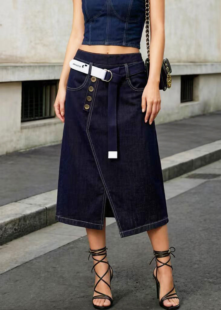 Elegant Navy Asymmetrical Side Open Denim Skirt Summer