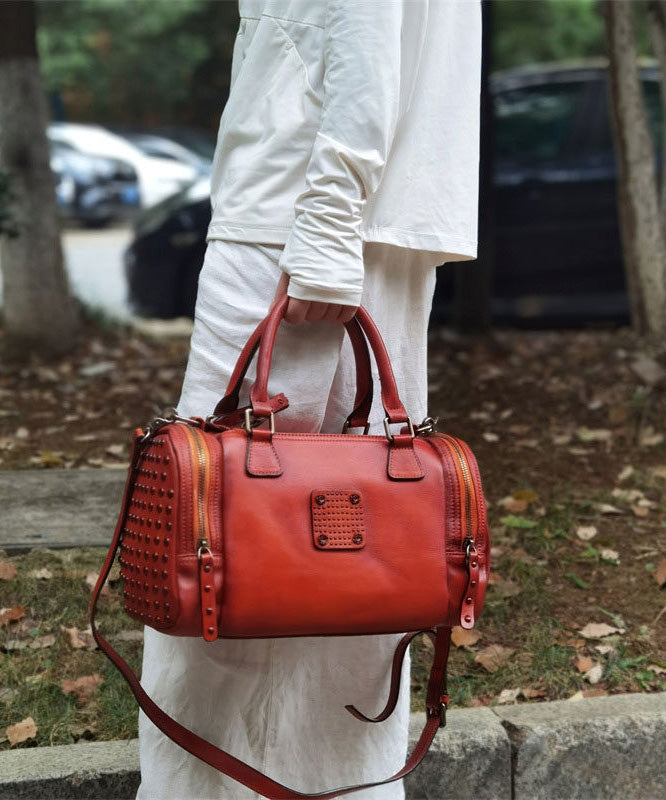 Handmade Coffee Rivet Calf Leather Tote Bag