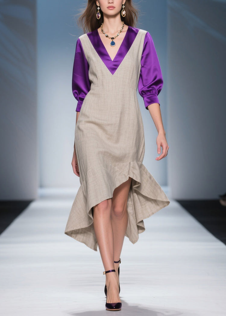 Stylish Asymmetrical Design Patchwork Linen Silk Dress Summer