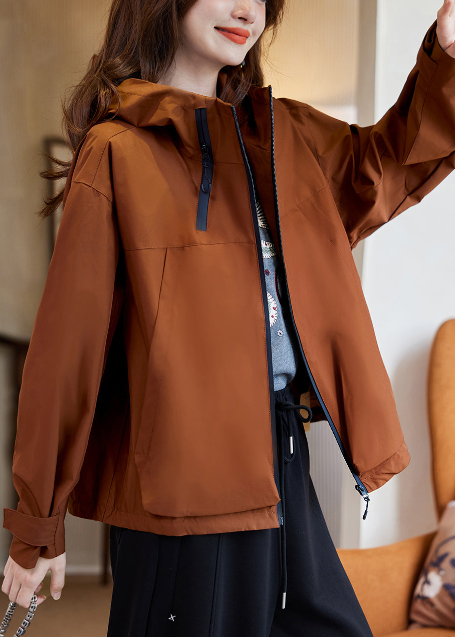 Casual Caramel Zippered Patchwork Hooded Coats Fall