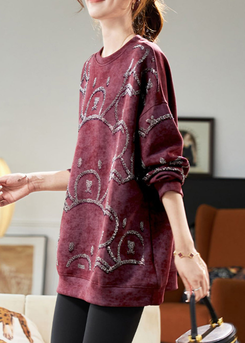 Plus Size Red O-Neck Cozy Sweatshirt Fall
