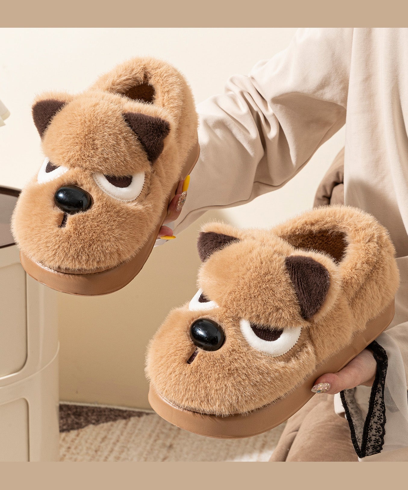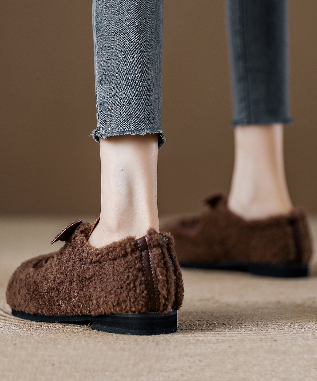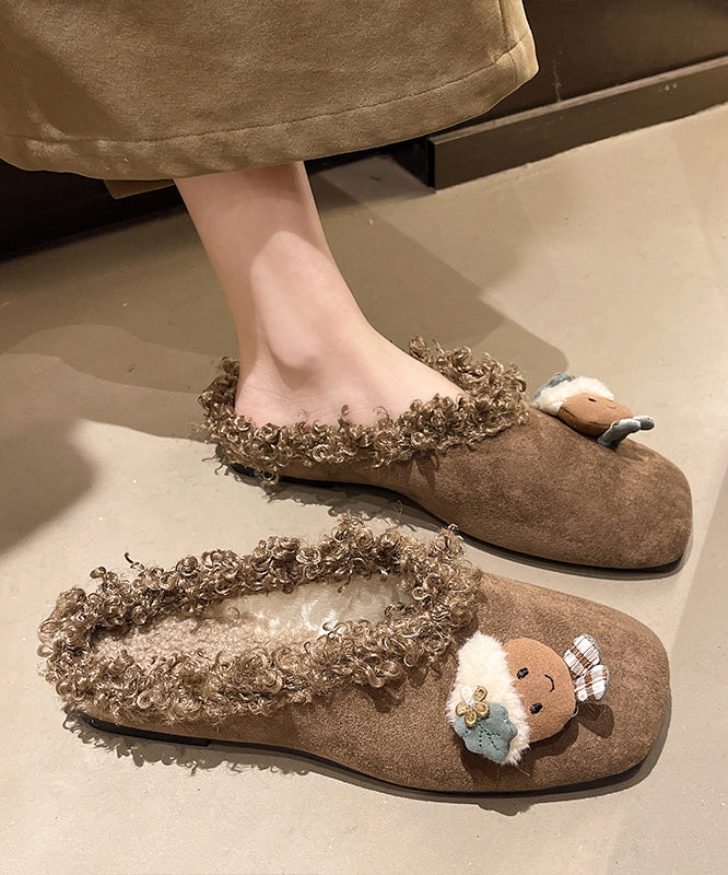 Brown Women Splicing Cartoon Fuzzy Fur Flat Feet Shoes