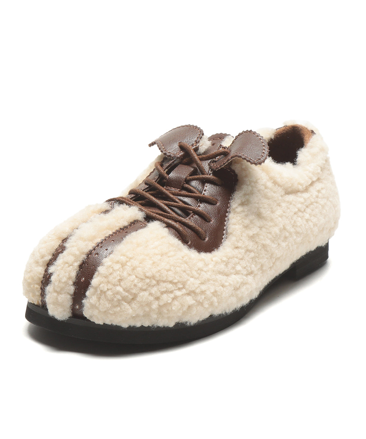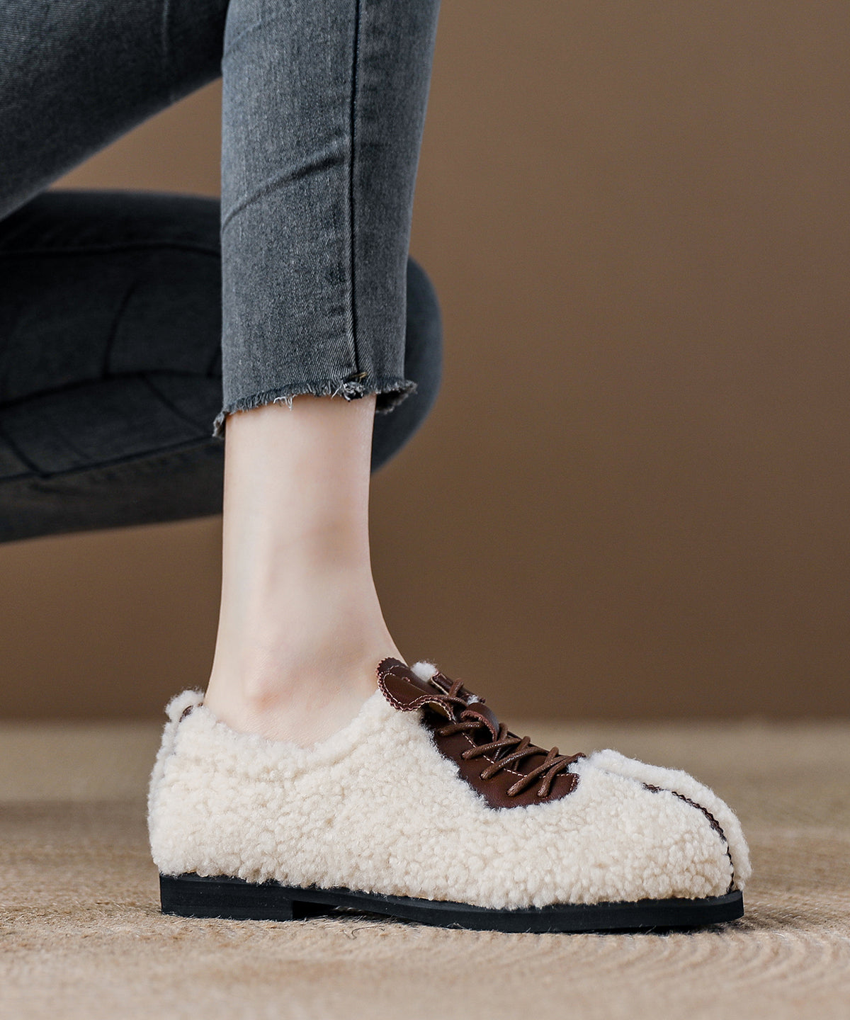 Chic Lace Up Splicing Flat Feet Shoes Beige Fuzzy Fur