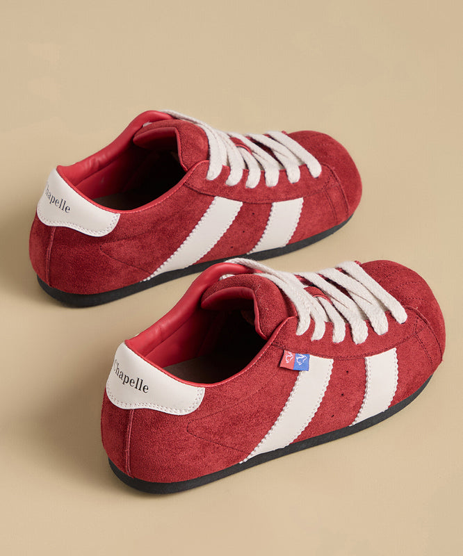 Leopard Suede Flat Shoes Women Splicing Lace Up