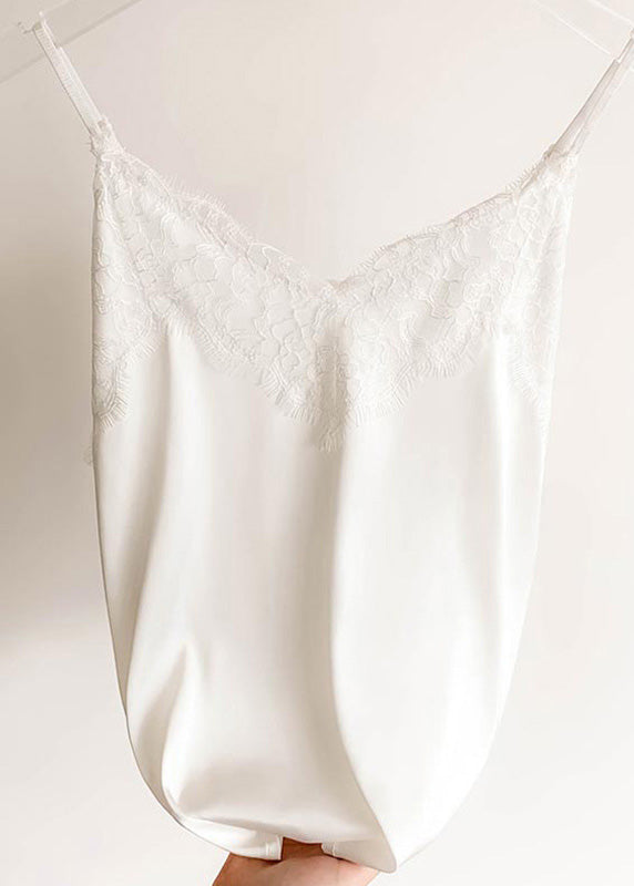 Brief White lace Vests Sleeveless V Neck