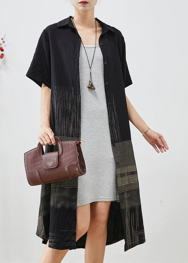 French Black Peter Pan Collar Print Cotton Shirt Dress Summer