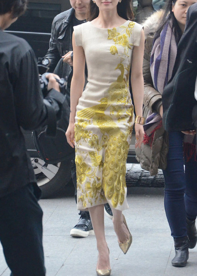 Handmade Apricot Embroidered Side Open Cotton Dresses Summer