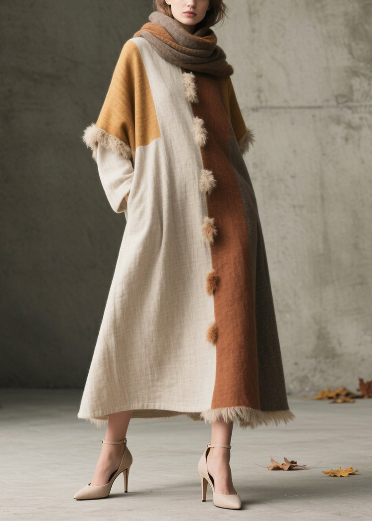 Handmade Asymmetrical Patchwork Fuzzy Ball Decorated Dresses Fall