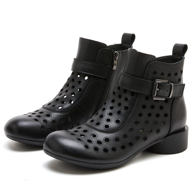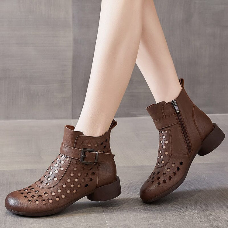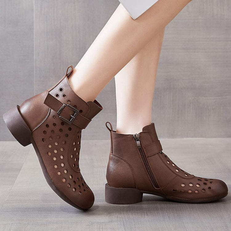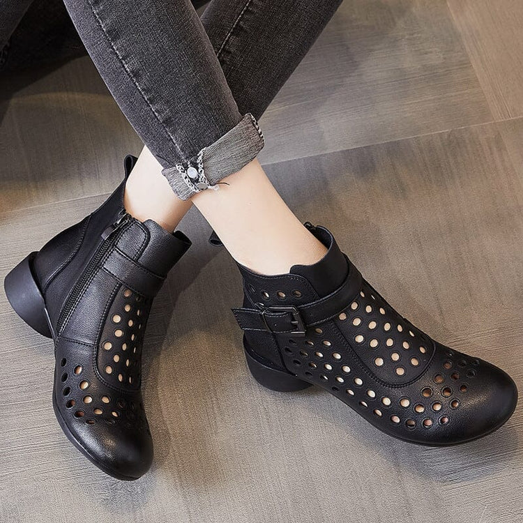 Summer Retro Hollow Leather Low Heels Boots