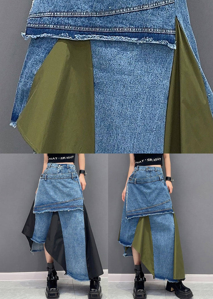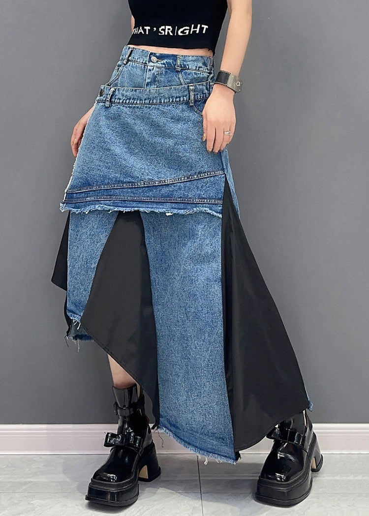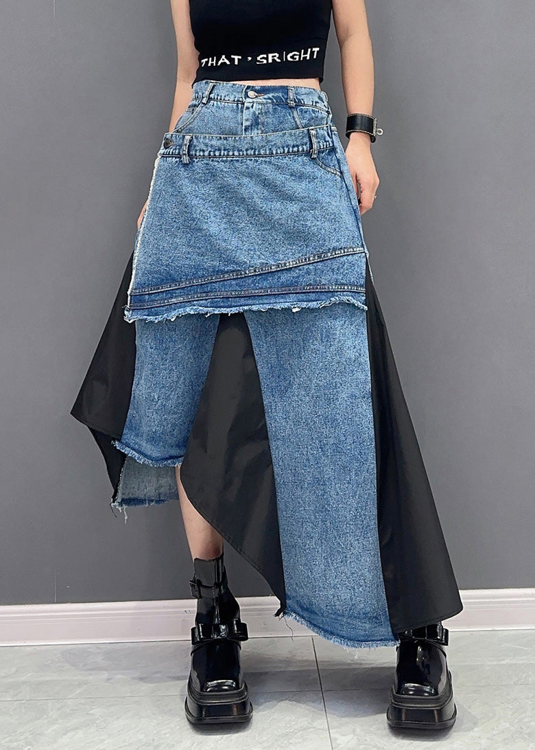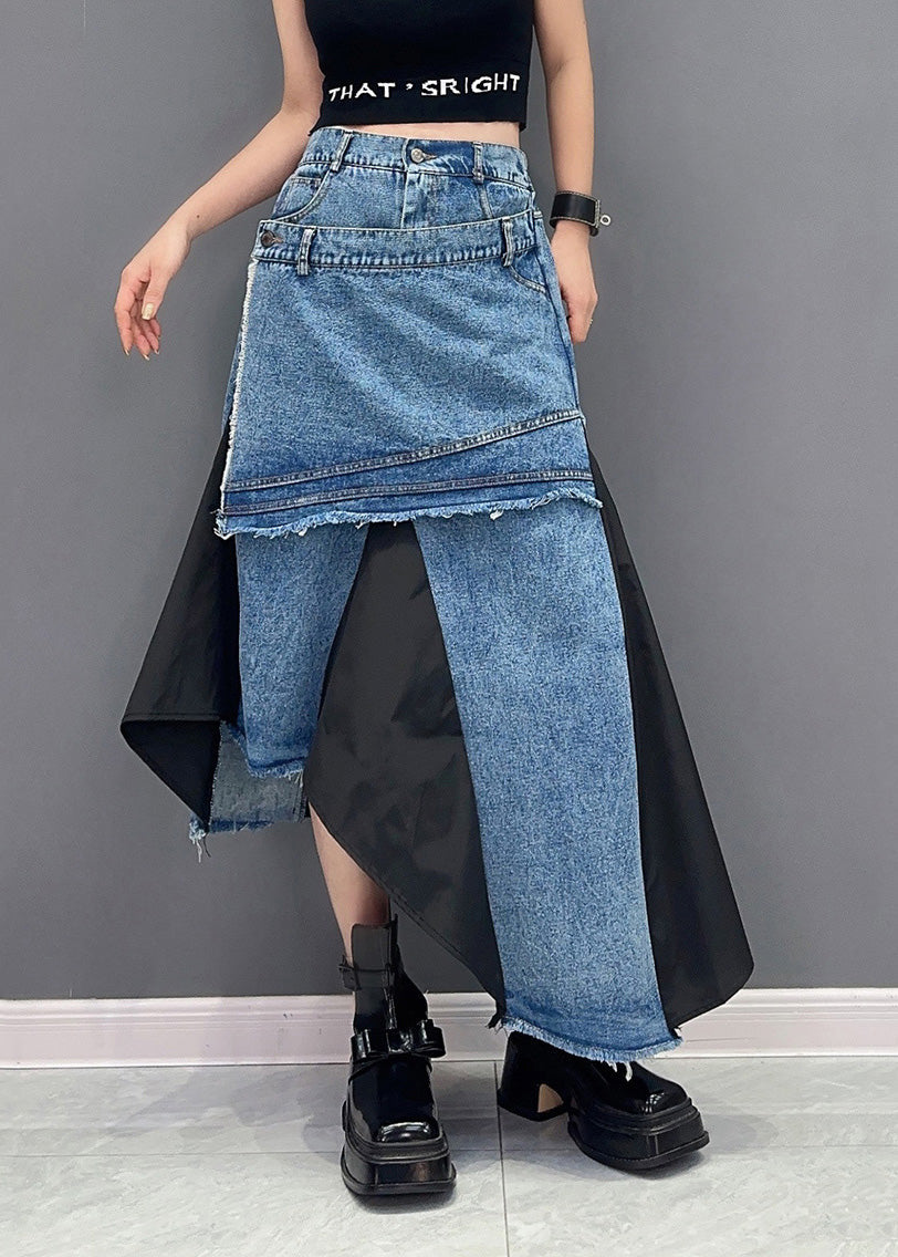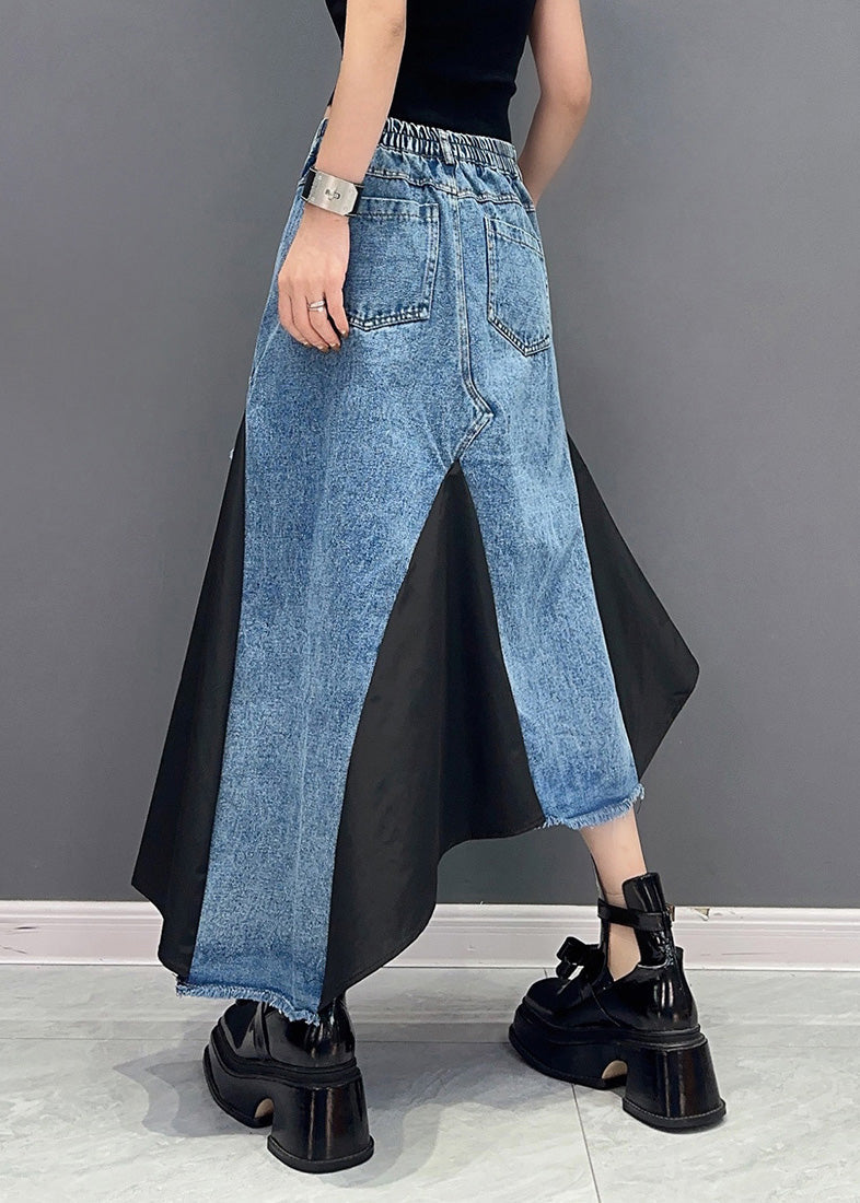 Black Pockets Patchwork Denim Skirts Asymmetrical Summer