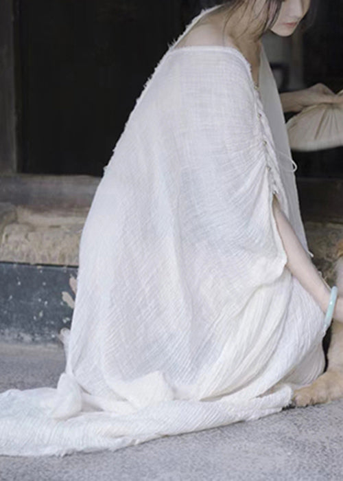 Elegant White V Neck Lace Up Cotton Maxi Dresses Summer