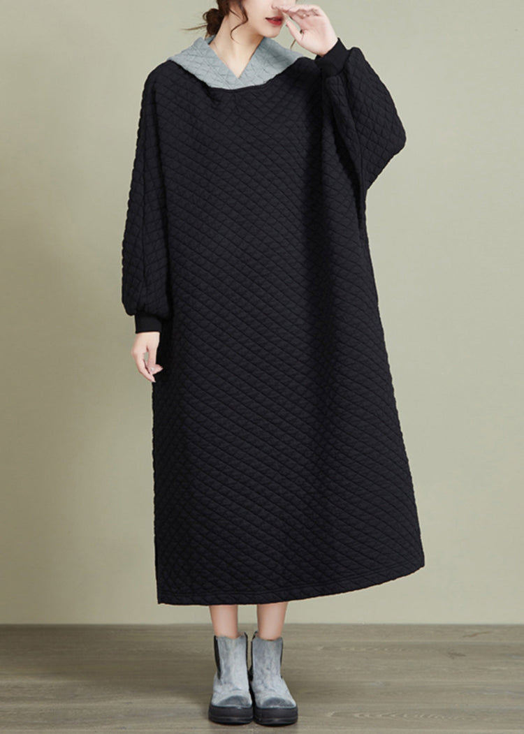 Plus Size Black Hooded Patchwork Thick Long Dresses Long Sleeve