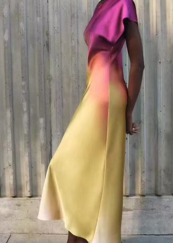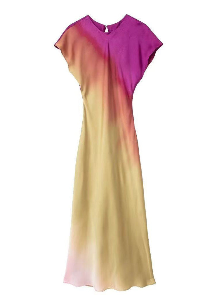 Style Slim Fit Tie Dye Silk Dresses Butterfly Sleeve