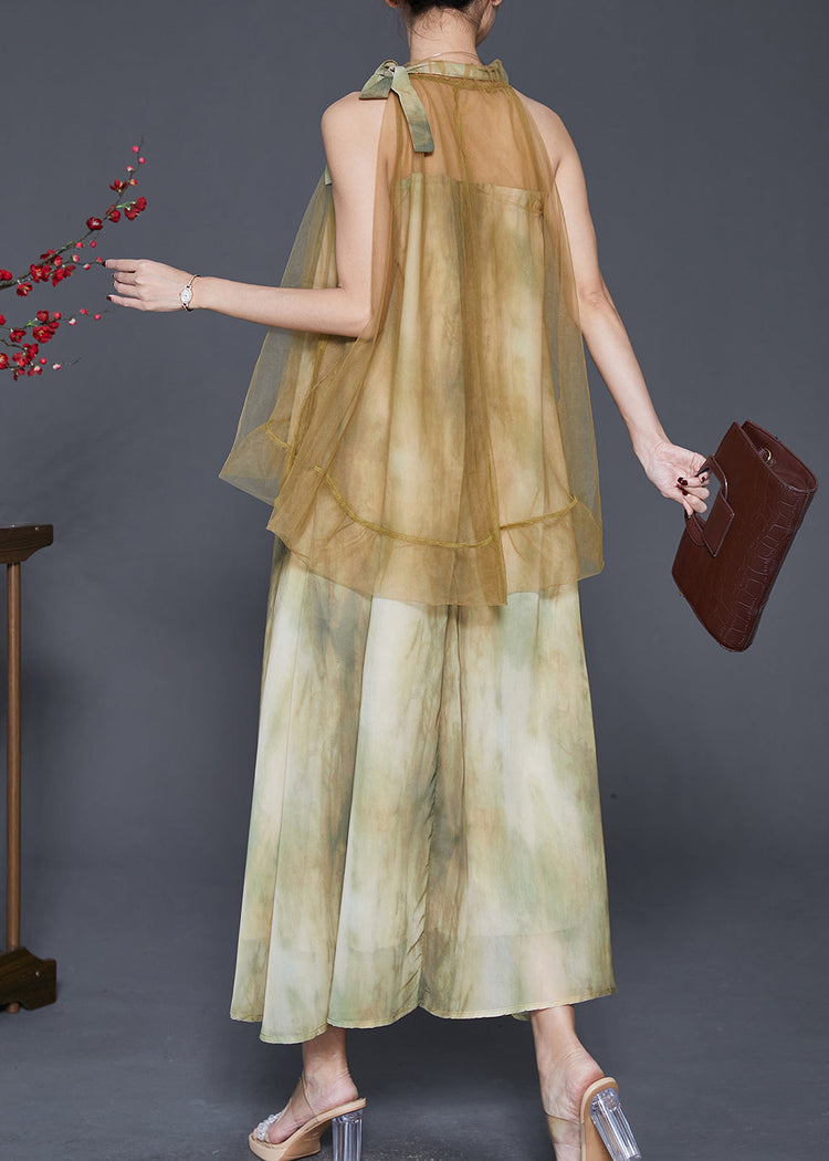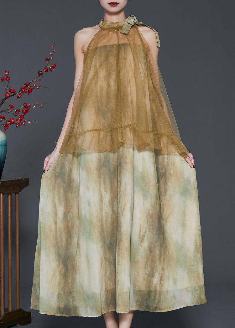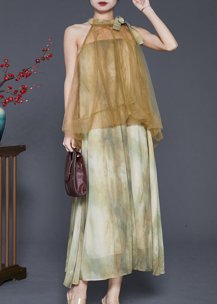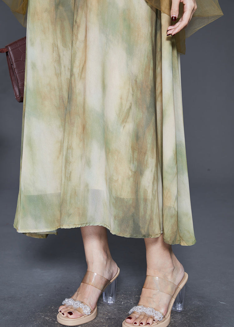 Stylish Green Tie Dye Cold Shoulder Chiffon Robe Dresses Summer