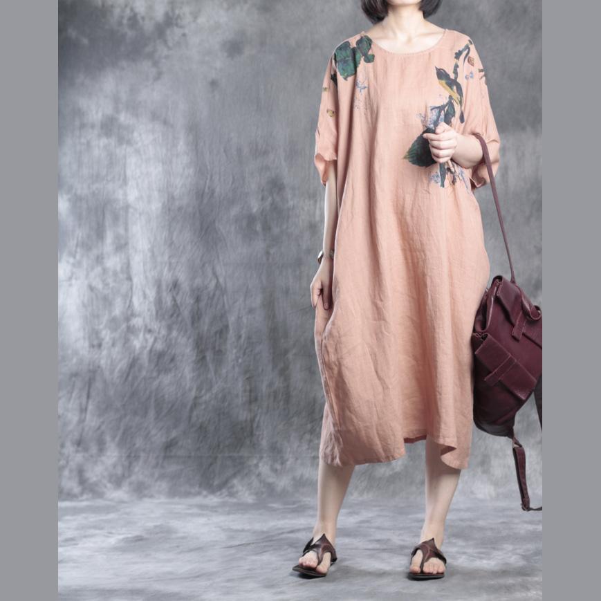Retro print floral linen sundress oversize maxi dresses summer traveling dress