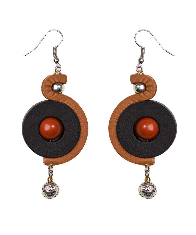Art Silk Alloy Inlaid Gem Stone Wood Chip Drop Earrings