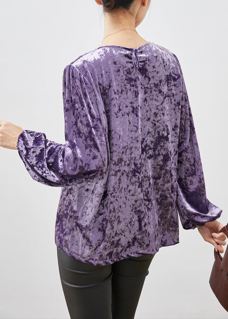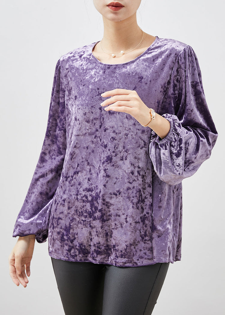 Fine Purple O-Neck Oversized Silk Velour Shirts Spring