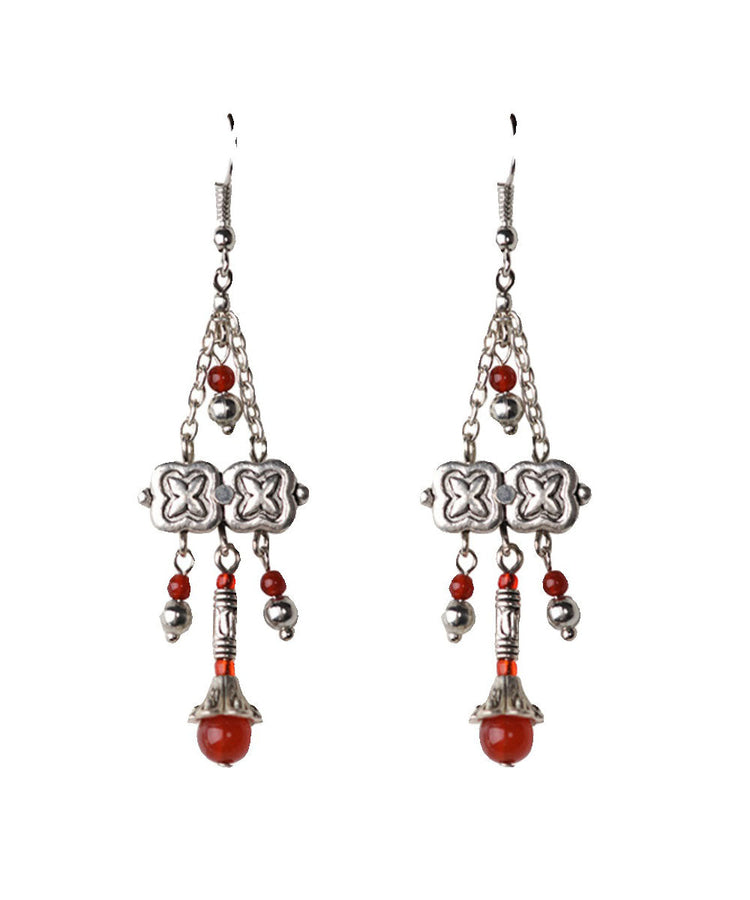 Handmade Silk Sterling Silver Alloy Agate Drop Earrings