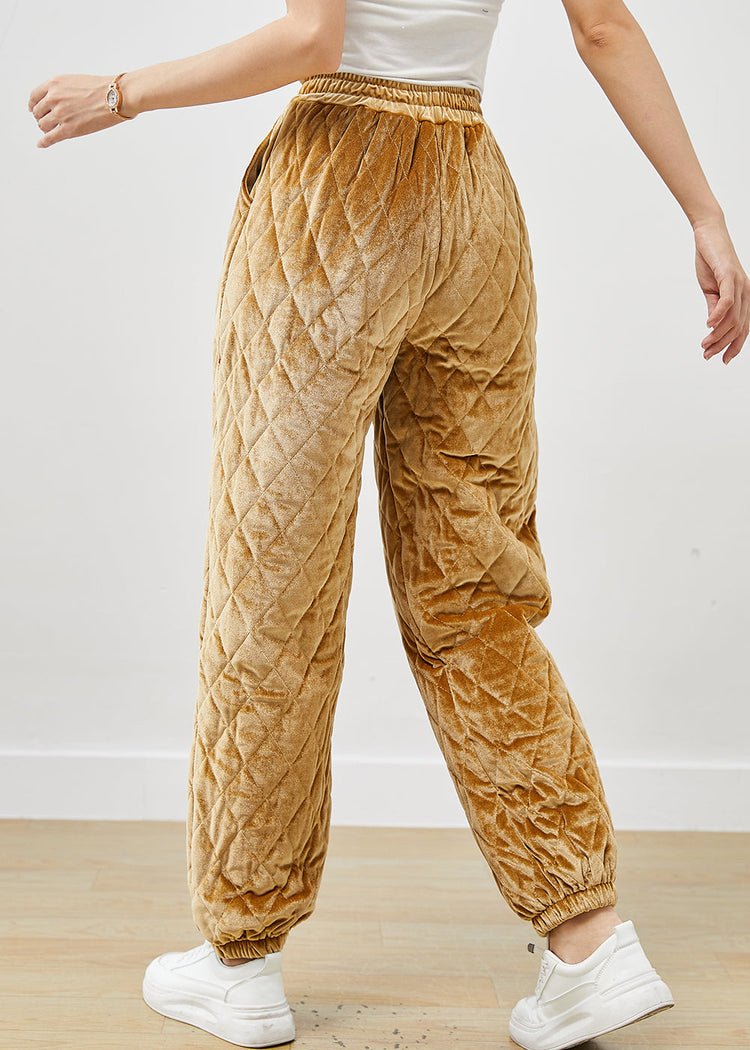 Khaki Fine Cotton Filled Silk Velour Pants Elastic Waist Winter