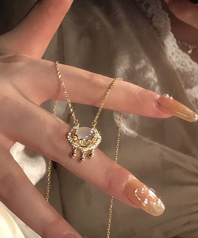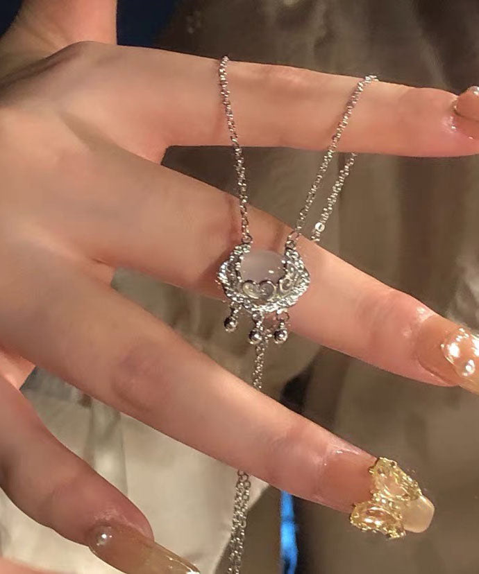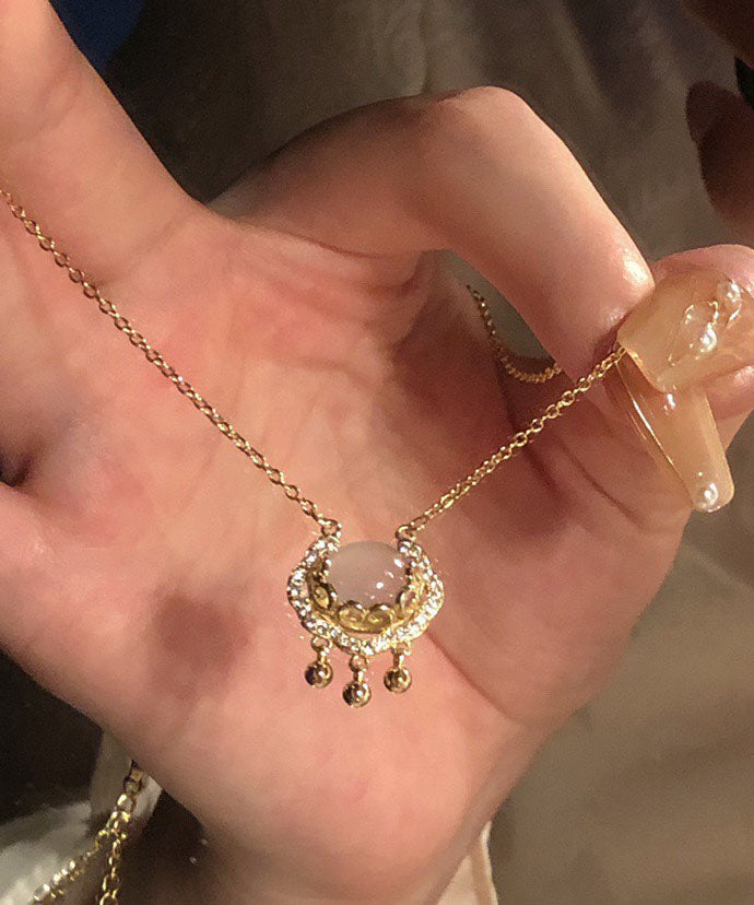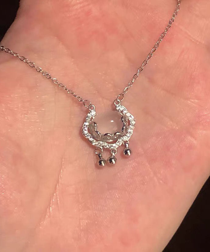 Loose Silk Stainless Steel Jade Ruyi Small Bell Pendant Necklace